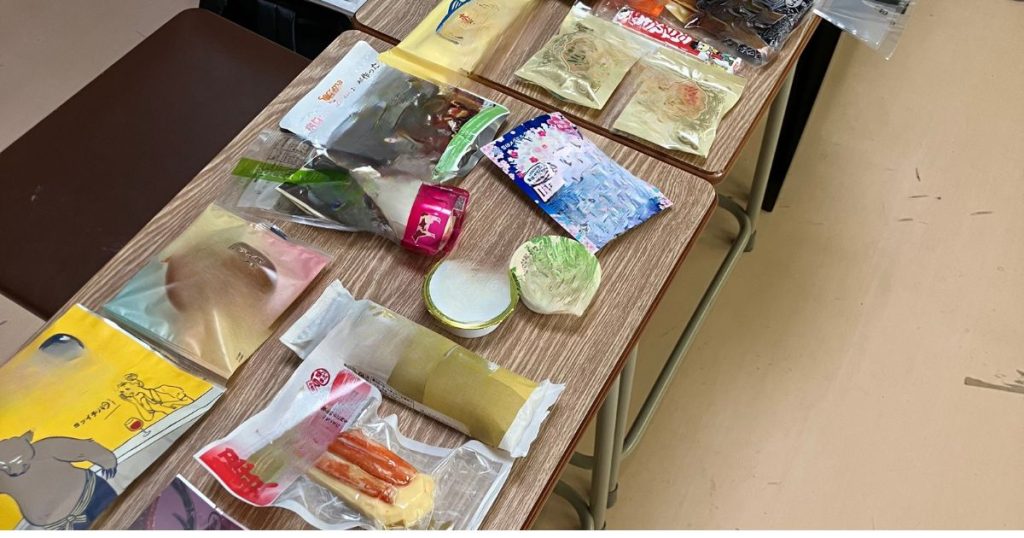 「身近な食品や製品の包材サンプルを展示」